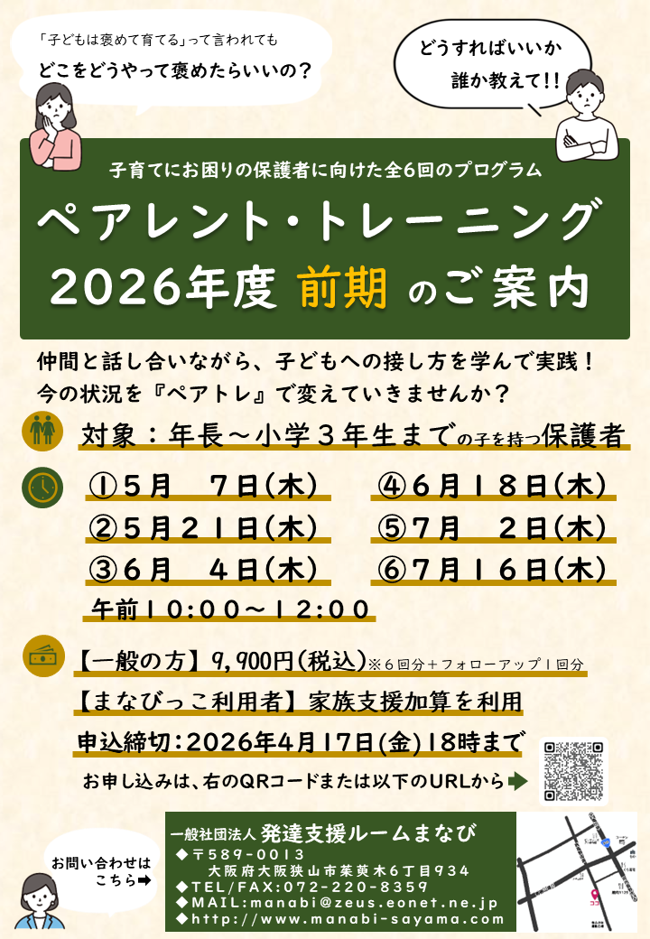 2025年度の後期ペアレント・トレーニングの開催日程が決定しました。