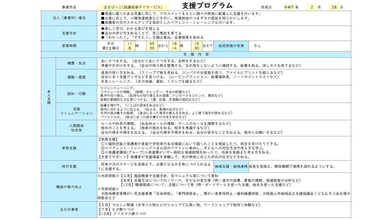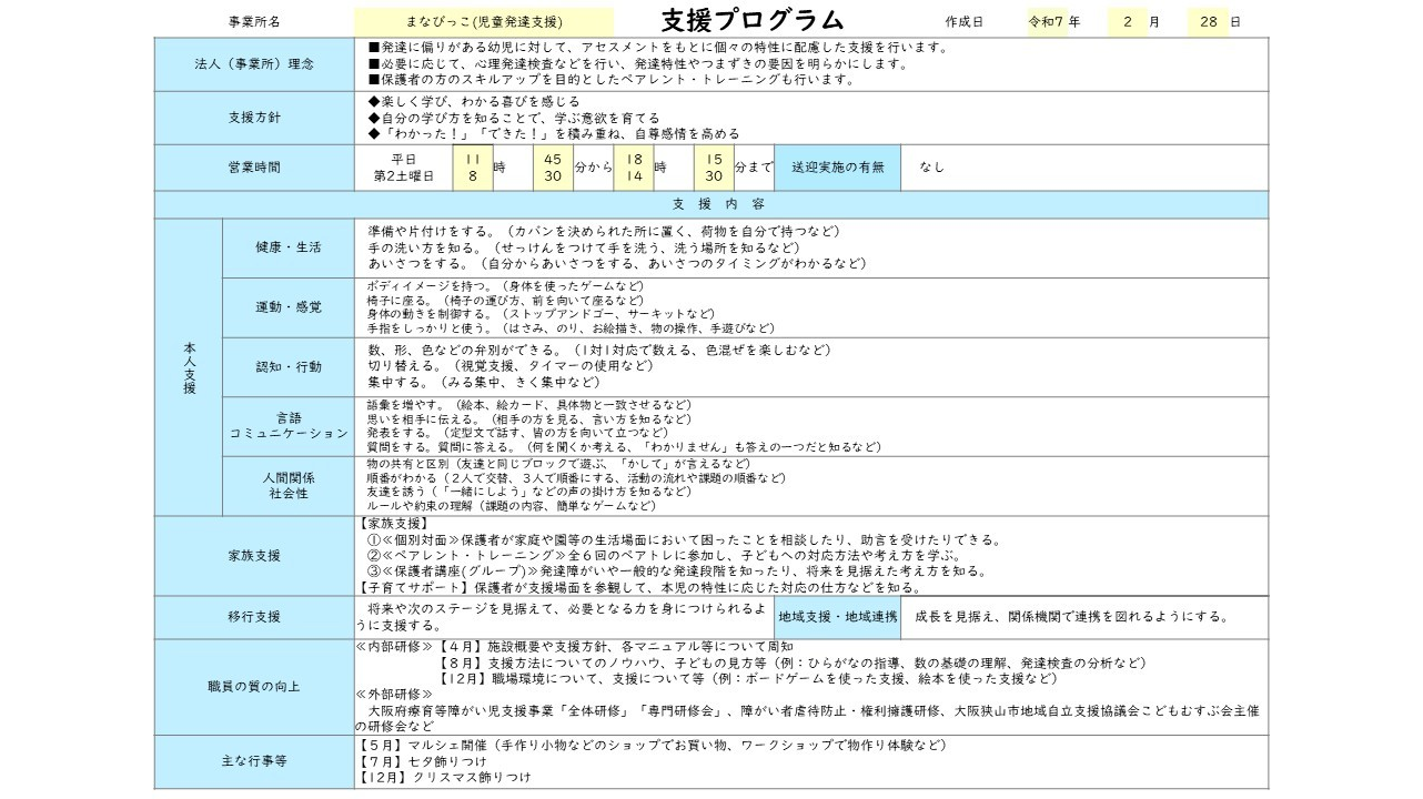 (対象は児童発達支援・放課後等デイサービスまなびっこを利用している幼児及び小学生に限らせて頂きます。)